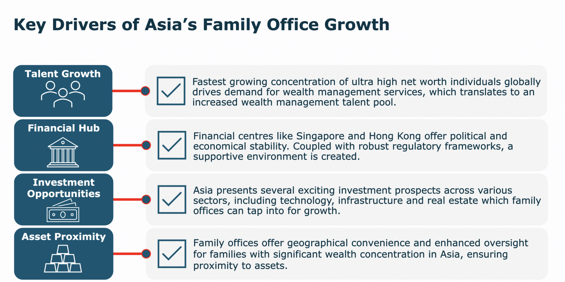 Family Offices, both single and multi-family, are booming across Asia, driven by a mix of growth, stability, opportunity, and strategic location.